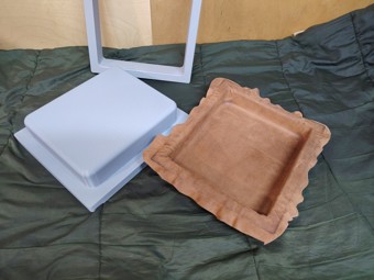 Формовка для кожи, материал пластик, габаритный размер длинна 295мм ширина 255мм, высота 70мм. Размер готового изделия длинна 250мм, ширина 210мм, 47мм. Используется для изготовления мужской сумки или двух женских.