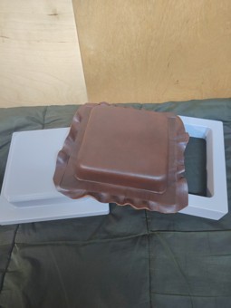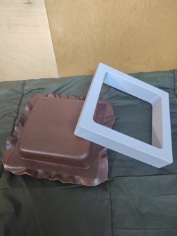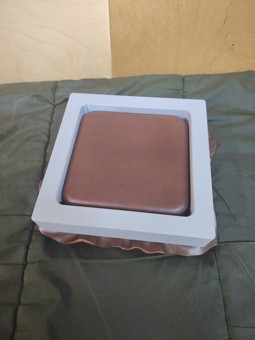 Формовка для кожи, материал пластик, габаритный размер длинна 210мм ширина 210мм, высота 60мм. Размер готового изделия длинна 160мм, ширина 160мм, 40мм. Используется для изготовления маленькой сумки или накладного кармана на Арт001.
